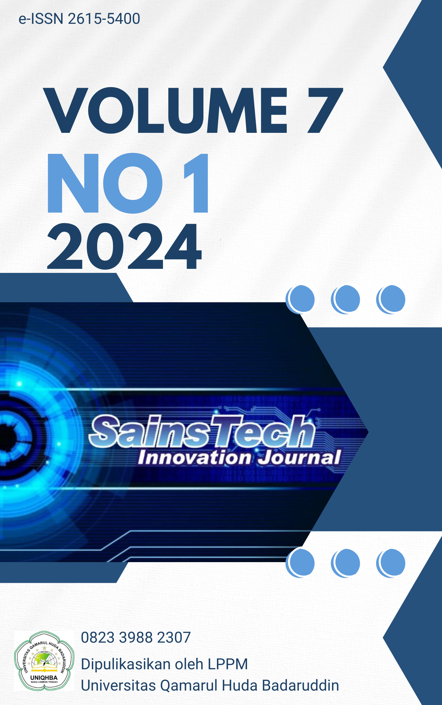 Vol. 7 No. 2 (2024)SIJ - SainsTech Innovation Journal is a journal from the University of Qamarul Huda Badaruddin Bagu (UNIQHBA). SIJ is managed by the Institute for Research and Community Service or LPPM UNIQHBA in collaboration with the Faculty of Science and Technology - UNIQHBA. The SIJ journal focuses on the study of science and technology innovation. Research articles accommodated in the SIJ journal are related to the fields of Information Technology and Computer Science and Civil Engineering with a focus and scope according to these fields. Articles submitted here will go through various stages such as review by reviewers according to the field of article research.